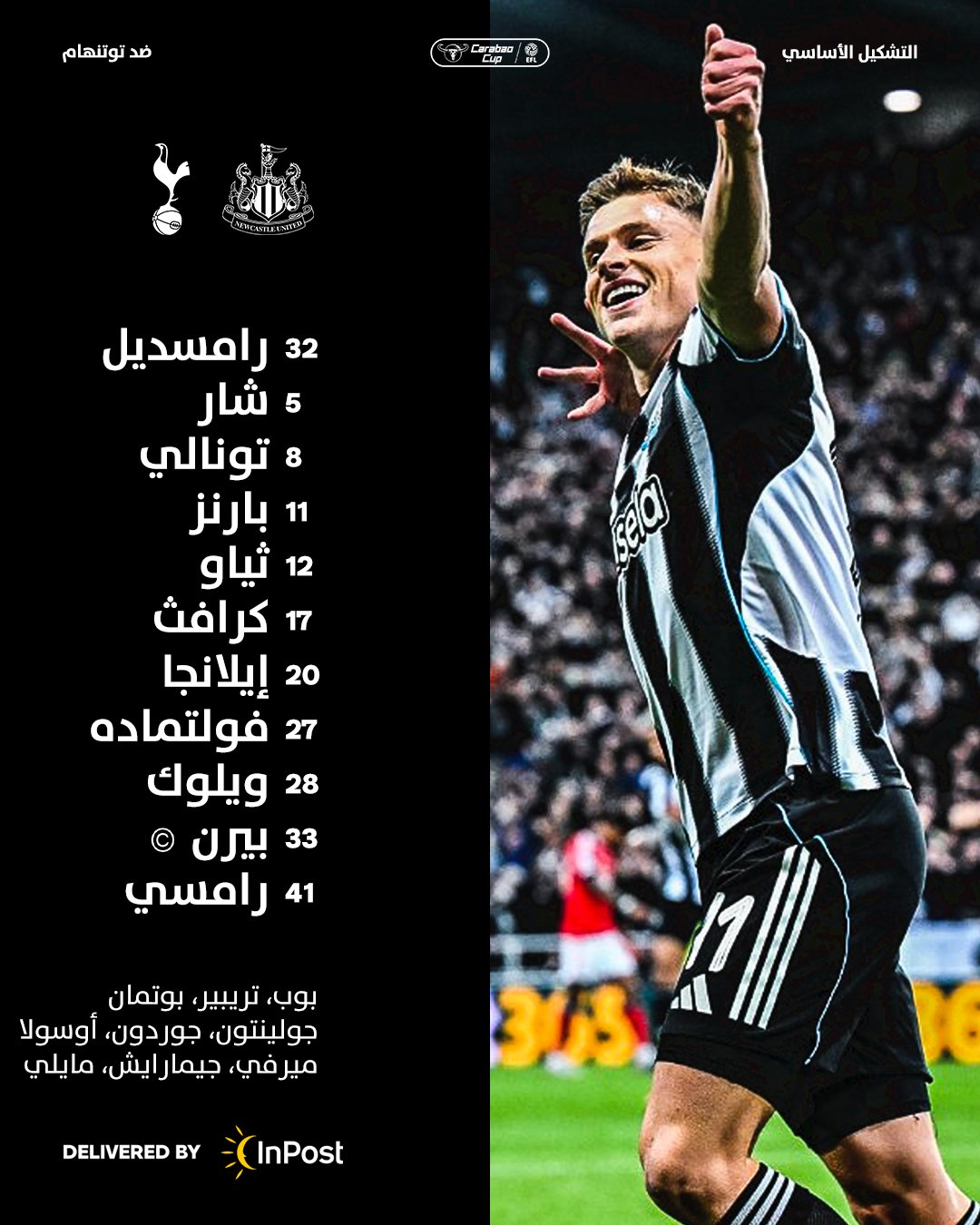 حقق الفريق الأول لكرة القدم بنادى نيوكاسل يونايتد، الفوز على نظيره فريق توتنهام، بنتيجة 2-0، في المباراة التي جمعت بينهما ضمن منافسات مسابقة كأس رابطة المحترفين الإنجليزي موسم 2025-2026.