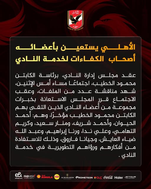 مجلس إدارة الأهلي يستعين بخبرات أعضاءه لخدمة النادي