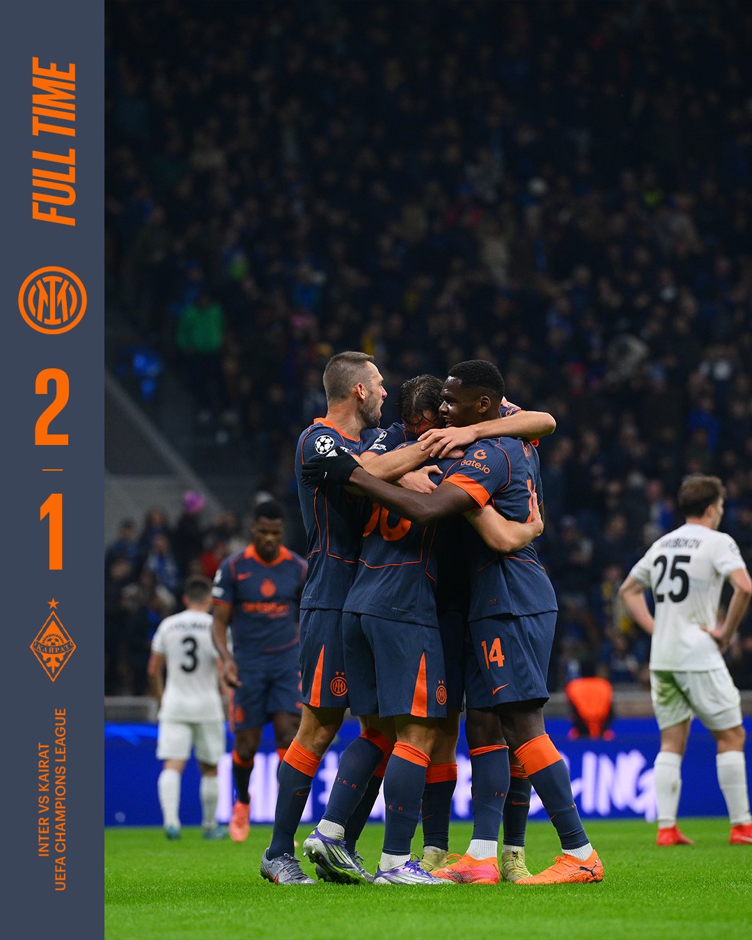حقق الفريق الأول لكرة القدم بنادى إنتر ميلان الإيطالي، الفوز على نظيره فريق كايرات الكازاخستاني، في المباراة التي أقيمت بينهما مساء اليوم الأربعاء على ملعب جوزيبي مياتزا، ضمن منافسات الجولة الرابعة من دور المجموعات لدوري أبطال أوروبا 2025-2026.