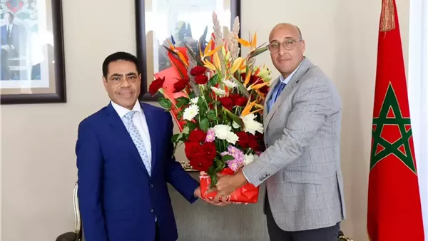 وقدم نائب رئيس النادي المغربي باقة من الورد لطارق قنديل ترحيبًا ببعثة الأهلي، في لفتة تعكس قوة العلاقات بين الناديين.
