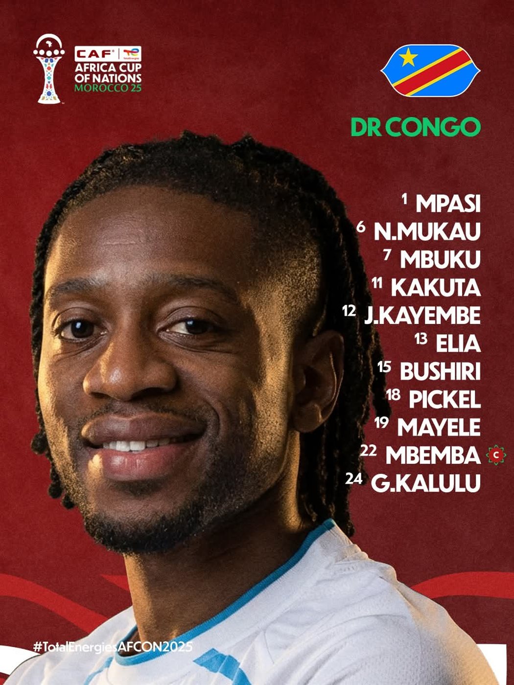 وفي المقابل جاء تشكيل منتخب الكونغو الديمقراطية مكوّنًا من: مباسي، نيكو موكاو، مبوكو، كاكوتا، جوزيف كاييمبي، إيليا، بوشيري، بيكل، مايلي، مبمبا (قائد الفريق)، وكالولو.