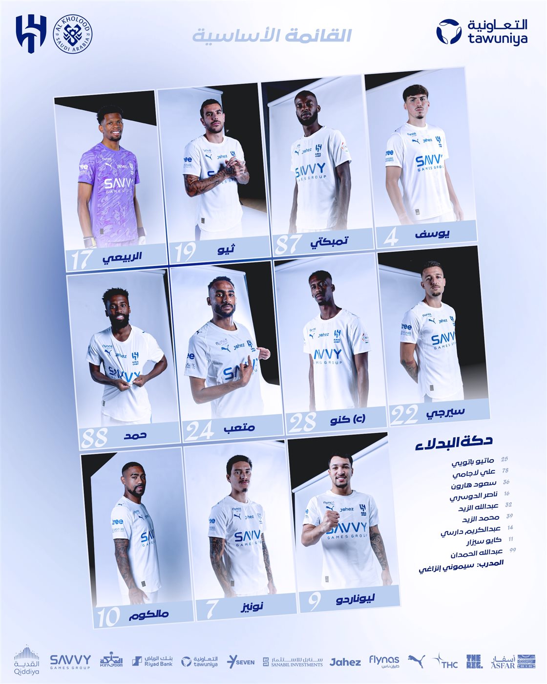 محمد الربيعي، حسان تمبكتي، يوسف أكتشيشيك، متعب الحربي، حمد اليامي، ثيو هيرنانديز، سيرجي سافيتش، محمد كنو، داروين نونيز، مالكوم فيليب، ماركوس ليوناردو.