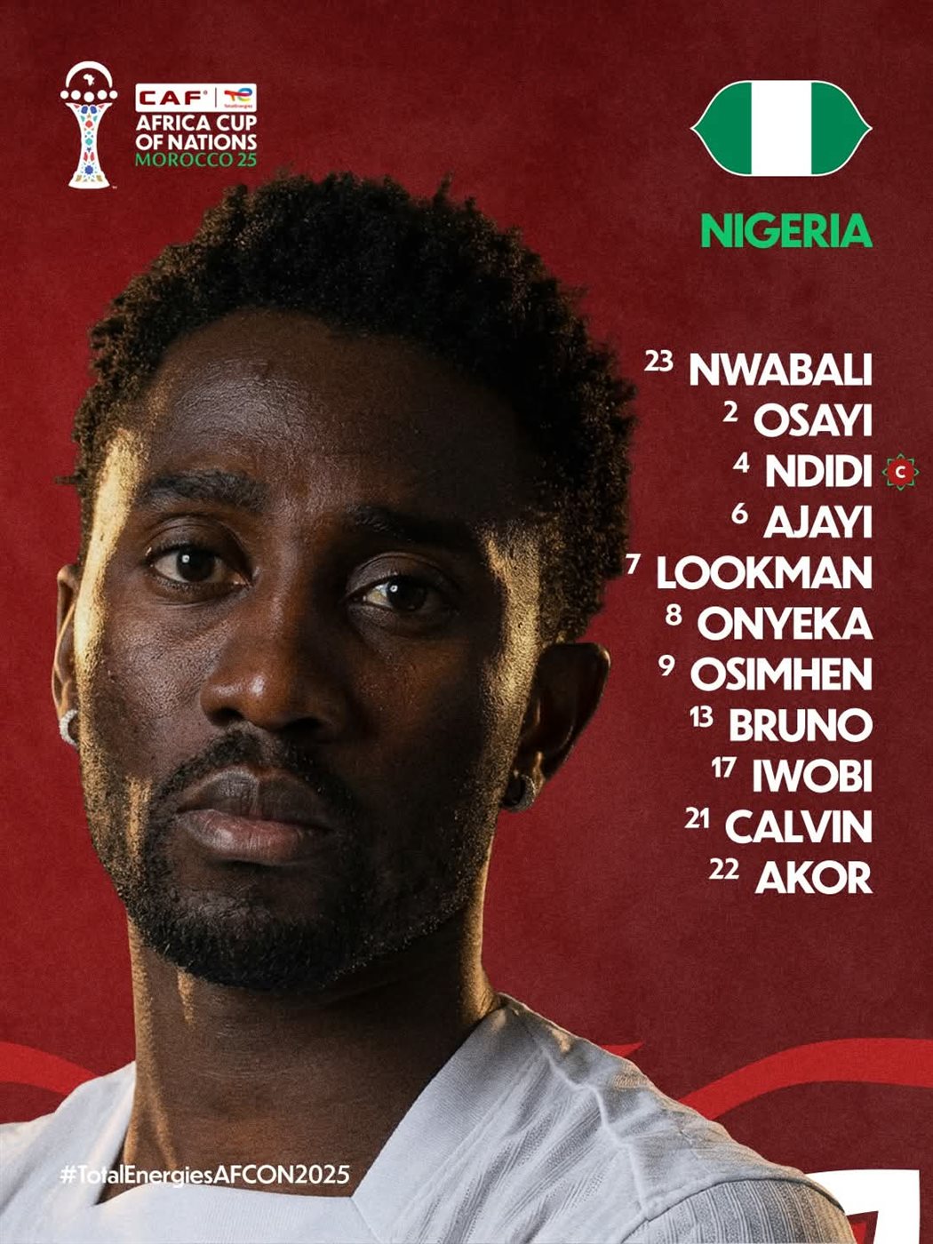 التشكيل الرسمي لمباراة نيجيريا وموزمبيق في كأس الأمم الأفريقية