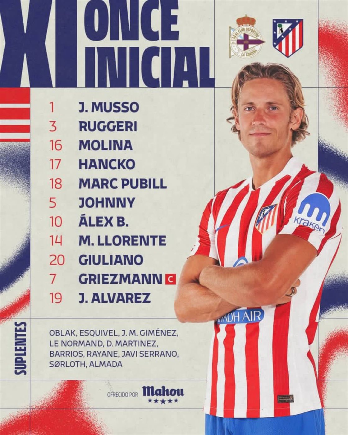 شهدت التشكيلة الأساسية بعض التغييرات التى تهدف لتدوير اللاعبين، مع الحفاظ على القوة الضاربة فى الخط الهجومى بقيادة النجم الفرنسى أنطوان جريزمان وزميله الأرجنتينى جوليان ألفاريز، و جاءت كالتالى :-