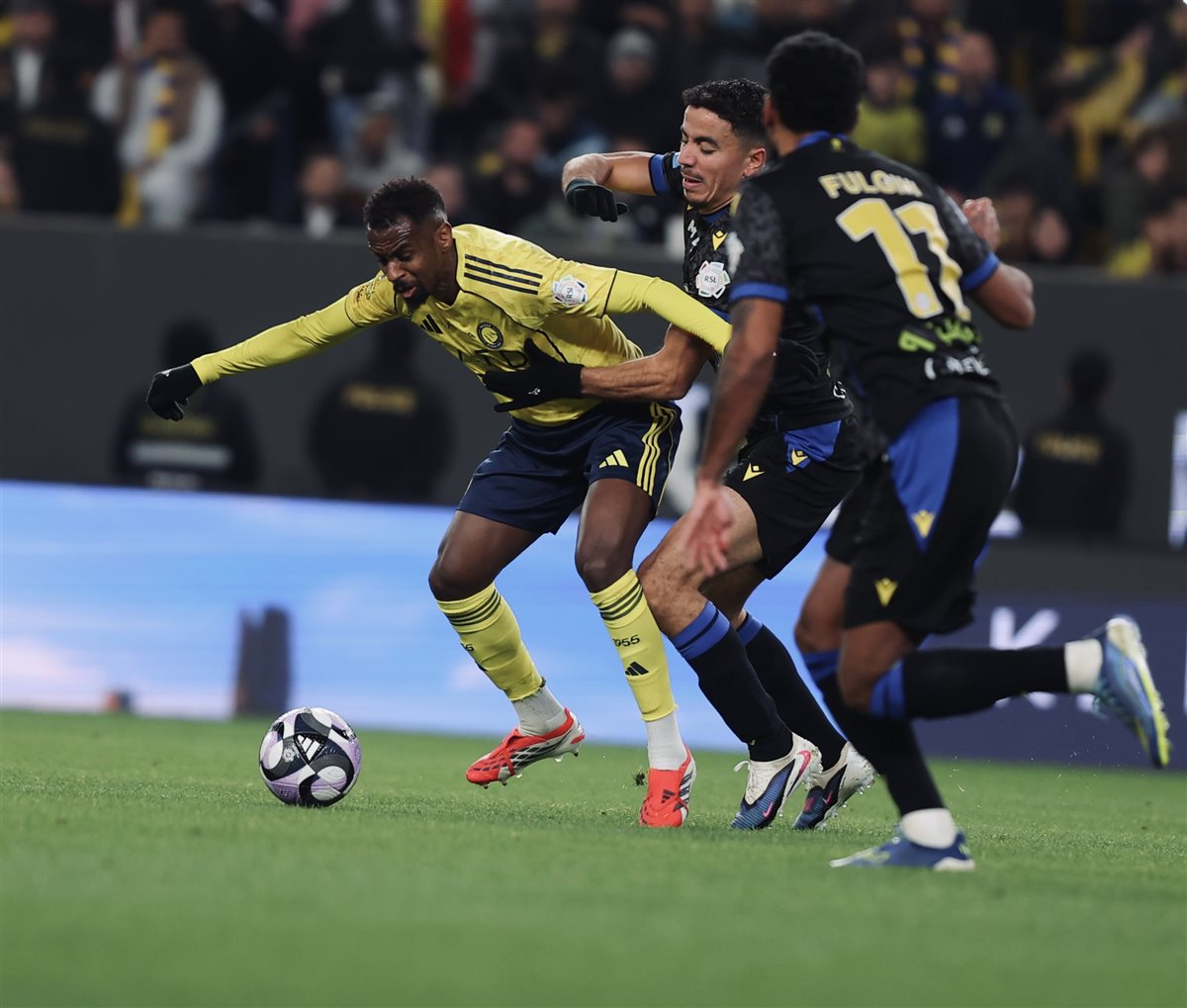 الوسط: عبدالله الخيبري- مارسيلو بروزوفيتش- كينجسلي كومان.