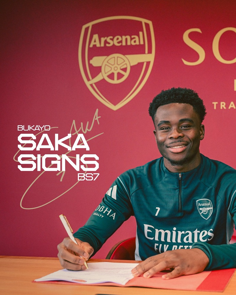 وكتب النادي اللندني عبر موقعه: "بوكايو ساكا هو واحد منا.. يسعدنا الإعلان عن توقيعه لعقد طويل الأمد مع المدفعجية".
