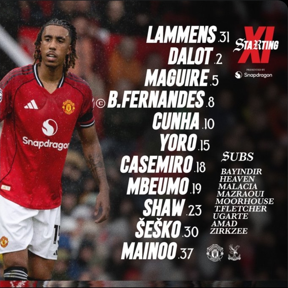 أعلن مايكل كاريك، المدير الفني لـ مانشستر يونايتد، تشكيل فريقه لمواجهة نظيره كريستال بالاس، اليوم الأحد، على ملعب أولد ترافورد، ضمن منافسات الدوري الإنجليزي الممتاز.