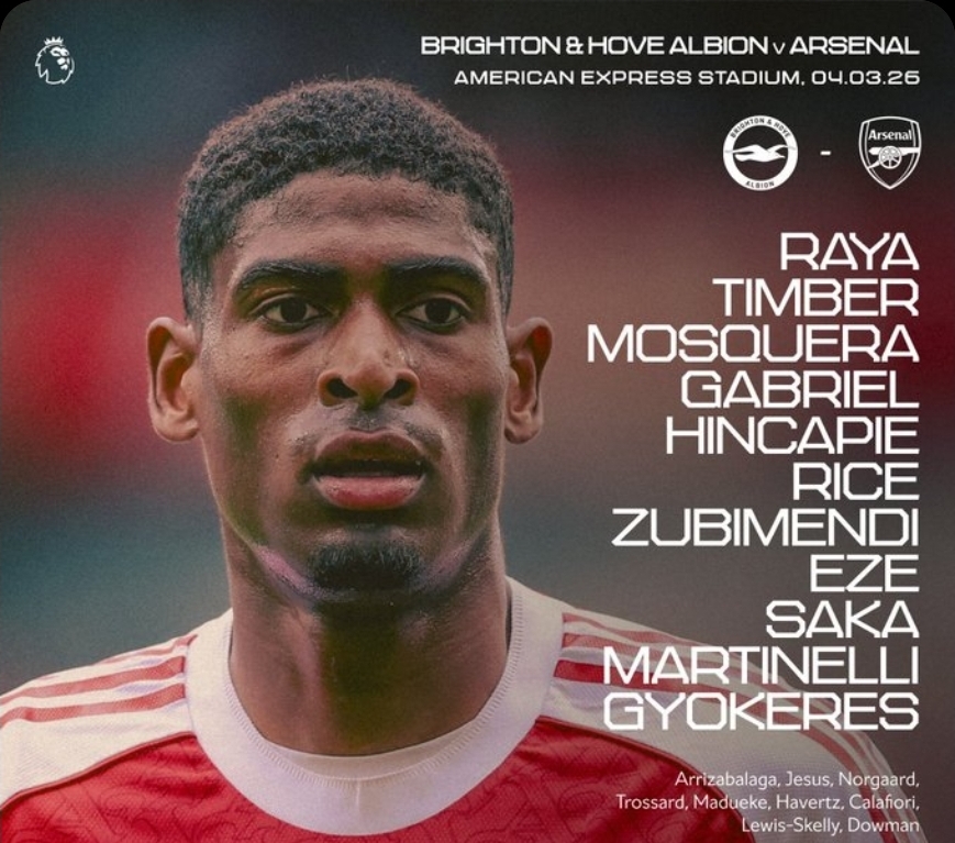 التشكيل الرسمي لمباراة ارسنال وبرايتون في الدوري الإنجليزي