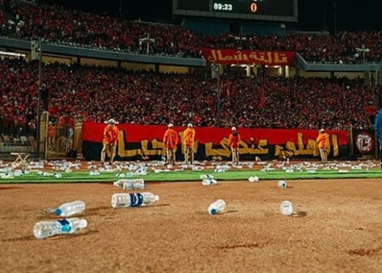 وكانت جماهير النادي الأهلي قد قامت بإلقاء زجاجات المياه، على أرضية الملعب، خلال مباراة الفريق أمام الجيش الملكي المغربي، في ختام منافسات دور المجموعات من بطولة دوري أبطال أفريقيا.