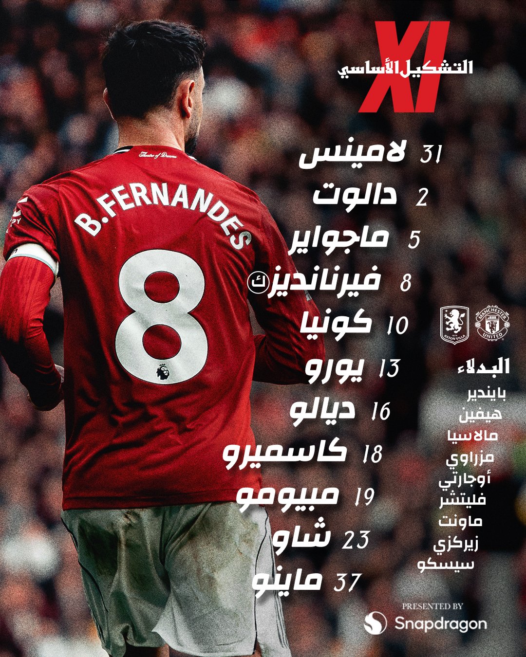 تشكيل مانشستر يونايتد أمام أستون فيلا