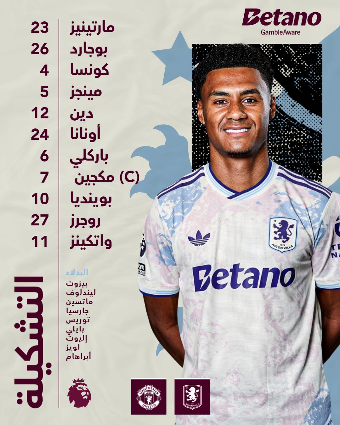 تشكيل أستون فيلا أمام مانشستر يونايتد