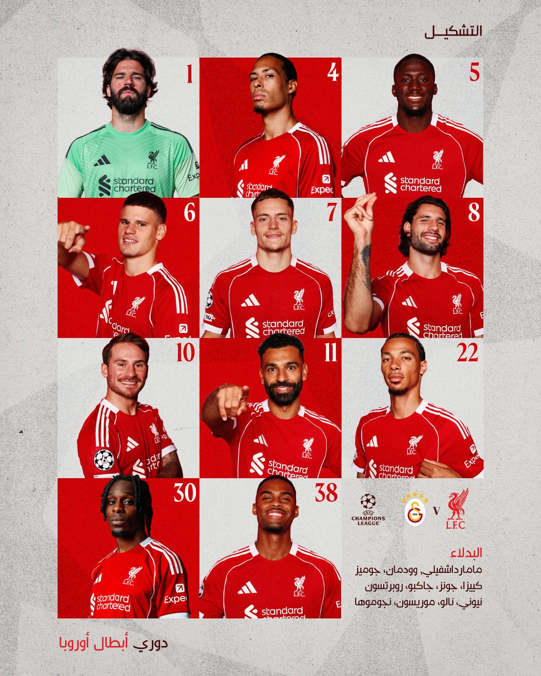 ويتواجد النجم المصري محمد صلاح في تشكيل ليفربول الأساسي لمواجهة جالطة سراي في دوري أبطال أوروبا اليوم، حيث يأتي تشكيل الريدز كالتالي: