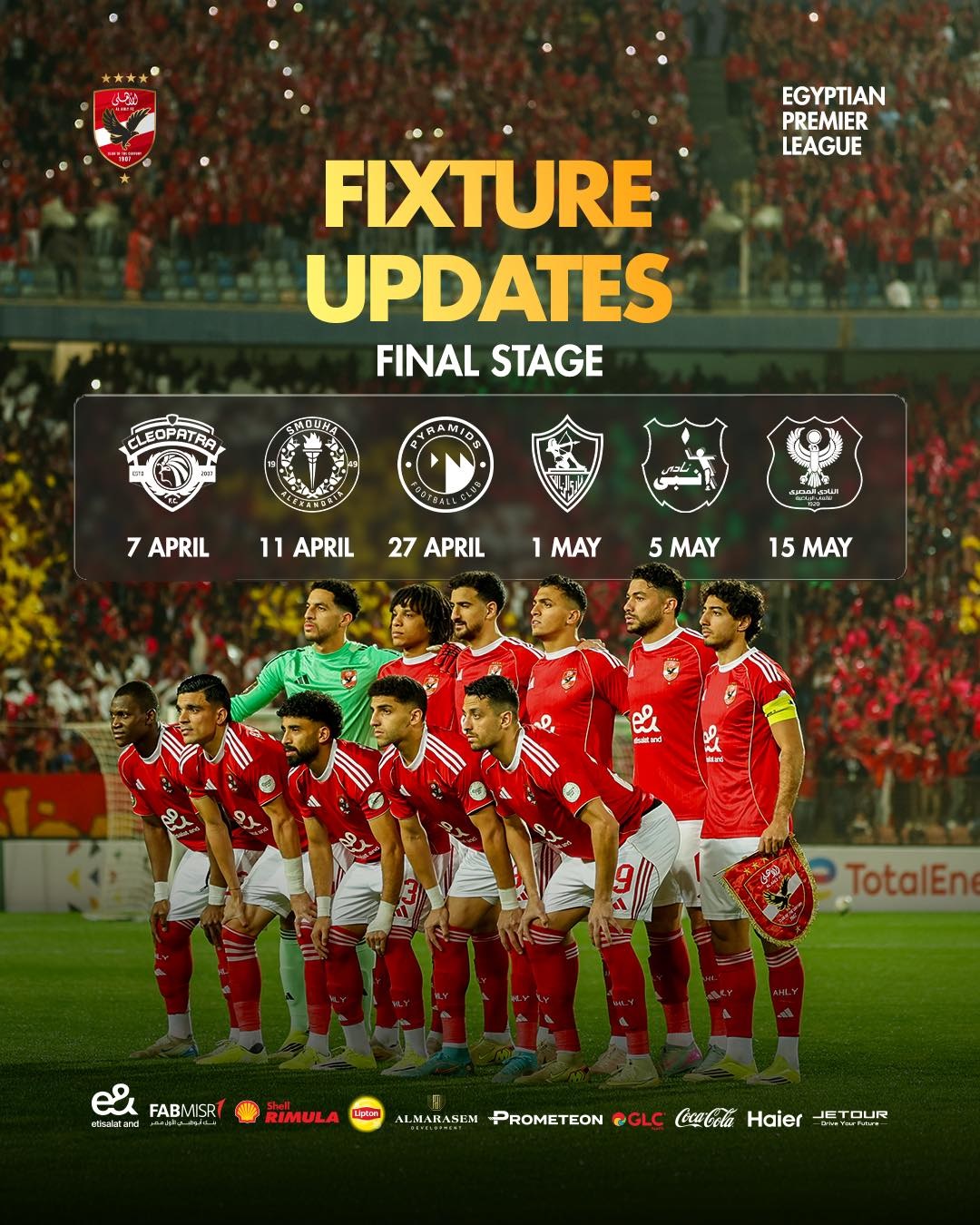 وجاءت مواعيد مباريات الأهلي حتى نهاية الموسم بعد التعديلات على النحو التالي: