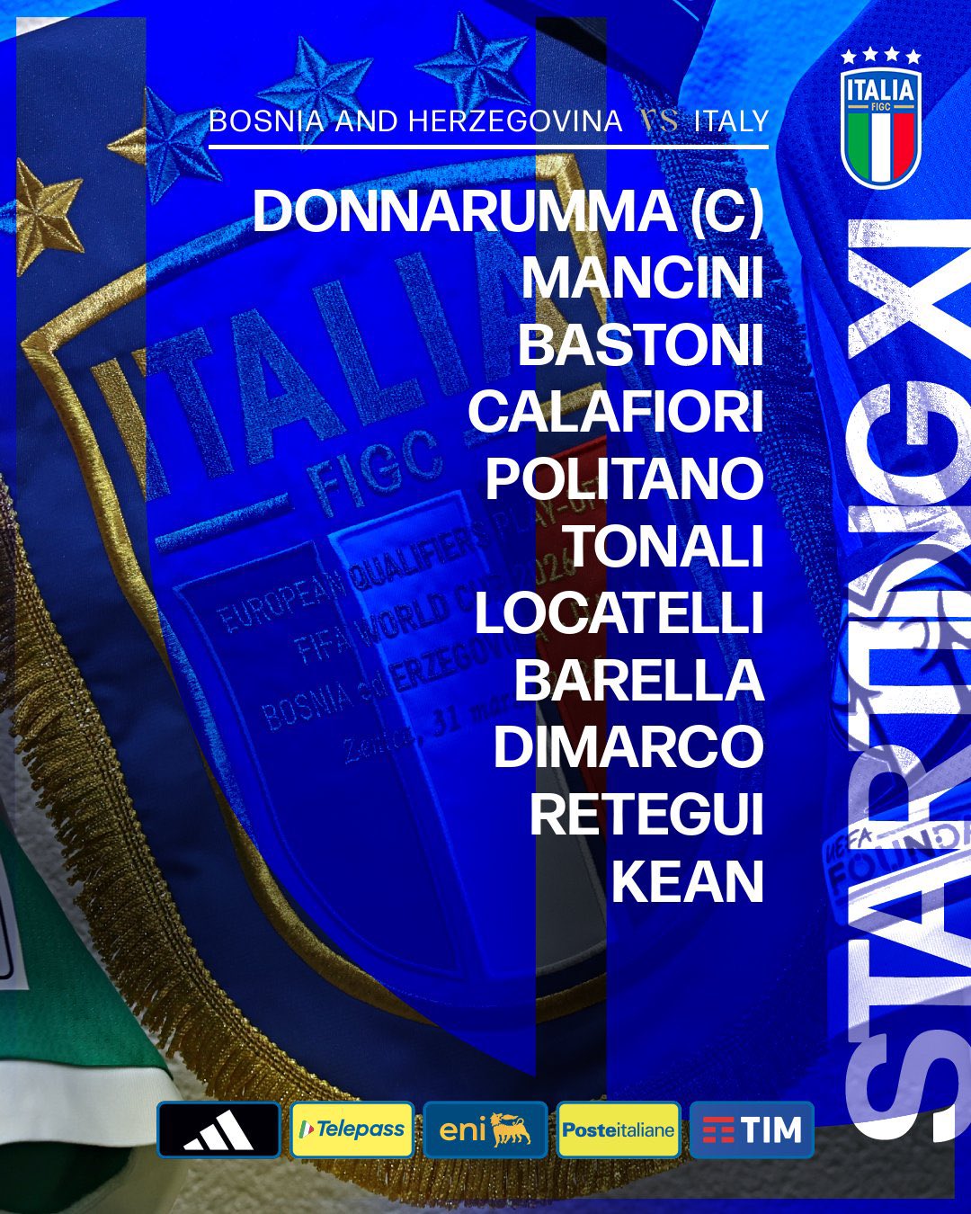 أعلن جينارو جاتوزو المدير الفني لـ منتخب إيطاليا، التشكيل الأساسي للفريق لمواجهة نظيره البوسنة والهرسك، في المباراة التي تجمعهما مساء اليوم بنهائي الملحق الأوروبي المؤهل لكأس العالم 2026.