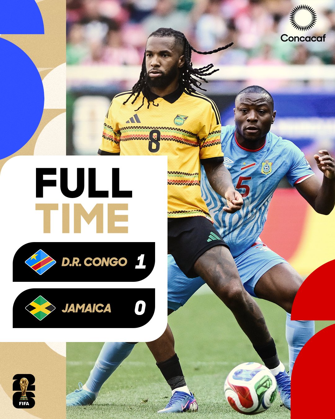 المباراة جاءت قوية ومتكافئة في أغلب فتراتها، قبل أن يحسمها منتخب الكونغو الديمقراطية في اللحظات الأخيرة من الشوط الإضافي، ليحقق فوزًا سيظل عالقًا في ذاكرة جماهيره، ويؤكد حضوره بين كبار العالم في النسخة المقبلة من كأس العالم.