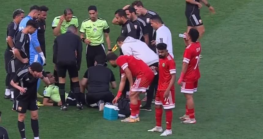 وشهدت المباراة واقعة مؤثرة في الدقيقة 23، بعد تعرض الحكم لإصابة قوية على مستوى الركبة، منعته من استكمال اللقاء، ليغادر أرضية الملعب متأثرًا بالإصابة.