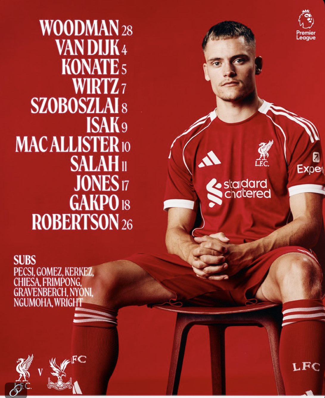 خط الوسط: كورتس جونس - أليكسيس ماك أليستر - فلوريان فيرتز.