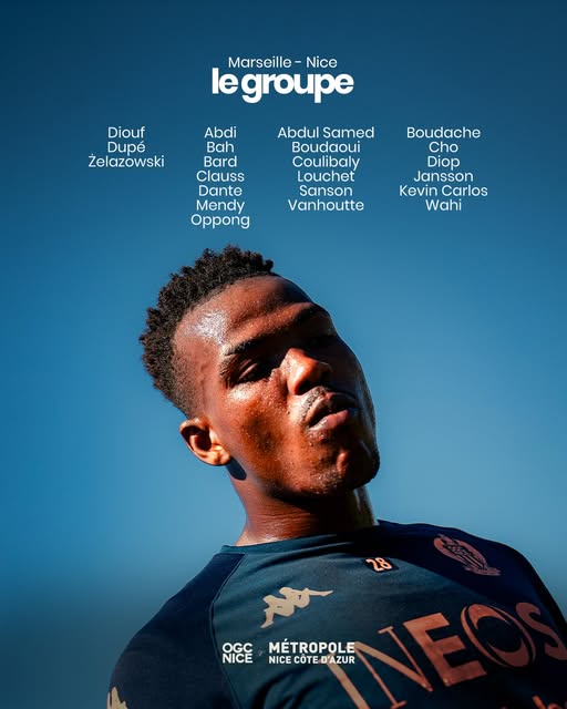 واصل محمد عبد المنعم، مدافع نادي نيس الفرنسي، غيابه عن قائمة الفريق للمباراة الثالثة على التوالي، خلال المواجهة المنتظرة أمام مستضيفه أولمبيك مارسيليا مساء اليوم، الأحد، على ملعب فيلودروم، ضمن منافسات الجولة الحادية والثلاثين من الدوري الفرنسي.